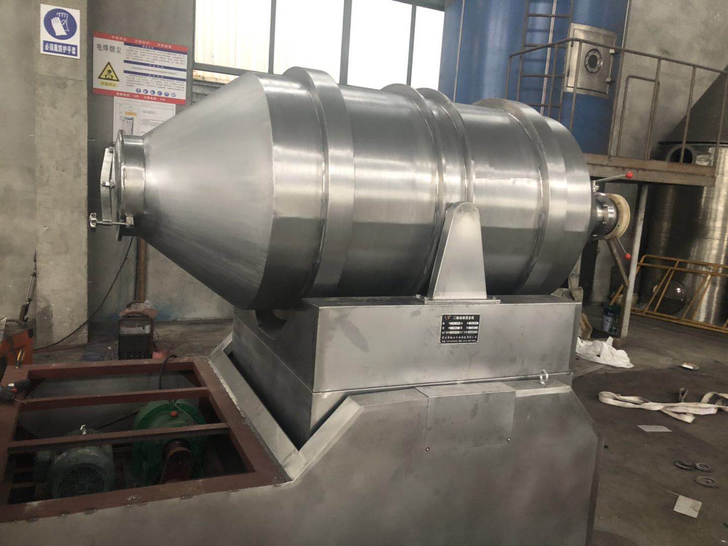 EYH 二維運(yùn)動混合機(jī)的轉(zhuǎn)筒可同時進(jìn)行二個運(yùn)動,一個為轉(zhuǎn)筒的轉(zhuǎn)動,另一個為轉(zhuǎn)筒隨擺動架的擺動。被混合物料在轉(zhuǎn)筒內(nèi)隨轉(zhuǎn)筒轉(zhuǎn)動、翻轉(zhuǎn)、混和的同時,又隨轉(zhuǎn)筒的擺動而發(fā)生左右來回的摻混運(yùn)動,在這兩個運(yùn)動的共同作用下,物料在短時間內(nèi)得到充分的混合。EYH二維混料機(jī)適合所有粉、粒狀物料的混合。