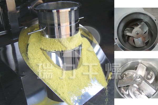 本機(jī)用于制藥、食品、沖劑、化工、固體飲料等行業(yè),將攪拌好的物料制成所需顆粒,特別適用對粘性較高的物料。