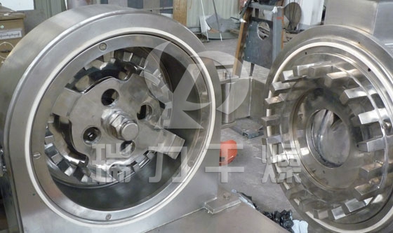 本機(jī)的工作原理是物料進(jìn)入粉碎室,在高速旋轉(zhuǎn)的活動齒盤與固定齒盤間受齒的沖擊、剪切、磨擦及物料間的相互撞擊的作用下被粉碎,經(jīng)篩網(wǎng)篩選后即成為所需的粉料。