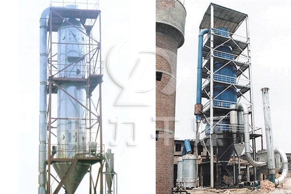 工作時(shí)物料液通過(guò)隔膜泵高壓輸入,噴出霧狀液滴,然后同熱空氣并流下降,大部分粉粒由塔底排料口收集,廢氣及其微小粉末經(jīng)旋風(fēng)分離器分離,廢氣由抽風(fēng)機(jī)排出,粉末由設(shè)在旋風(fēng)分離器下端的授粉筒收集,風(fēng)機(jī)出口還可裝備二級(jí)除塵裝置,回收率在96-98%以上。