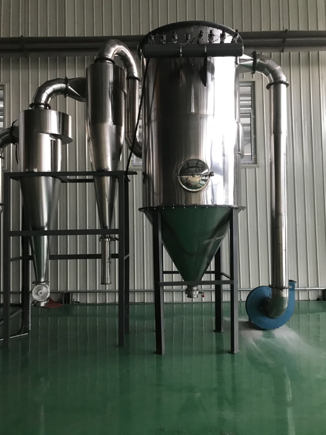 噴霧干燥具有一定噴動速度,熱空氣進入混合研磨通過入口管從干燥機底部干燥室。到了材料,強大的風切變,風浮動和旋被迫。這樣一來,這些材料轉(zhuǎn)向通過離心,切割,碰撞,摩擦加強傳質(zhì)和傳熱進行微粉化,